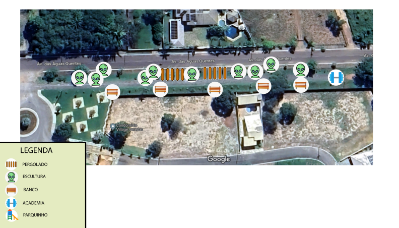 A ideia é que os visitantes possam apreciar as obras de arte, tirar fotos, descansar nos bancos de concreto, admirar os pergolados e levar as crianças para se divertir nos parquinhos. O local escolhido fica ao lado da pista de caminhada do Recanto das Acácias, que leva ao Parque das Águas Quentes, um dos maiores parques aquáticos do Brasil e o principal destino turístico da cidade.