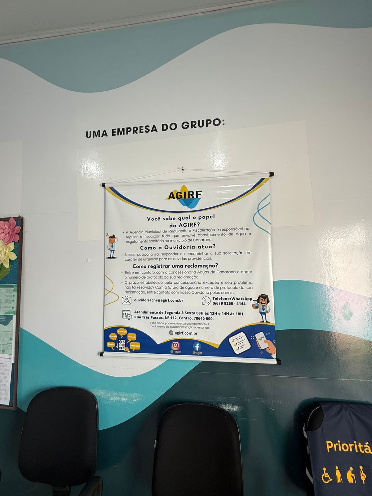 Além das melhorias já implementadas, a concessionária Águas de Canarana demonstrou prontidão e comprometimento em atender às solicitações da AGIRF, especialmente no que se refere à adequação da estrutura física da unidade de atendimento. Atendendo à recomendação da Ouvidoria, a empresa realizou a implantação de sanitário destinado ao público, medida essencial para garantir mais conforto, dignidade e qualidade no atendimento aos usuários.