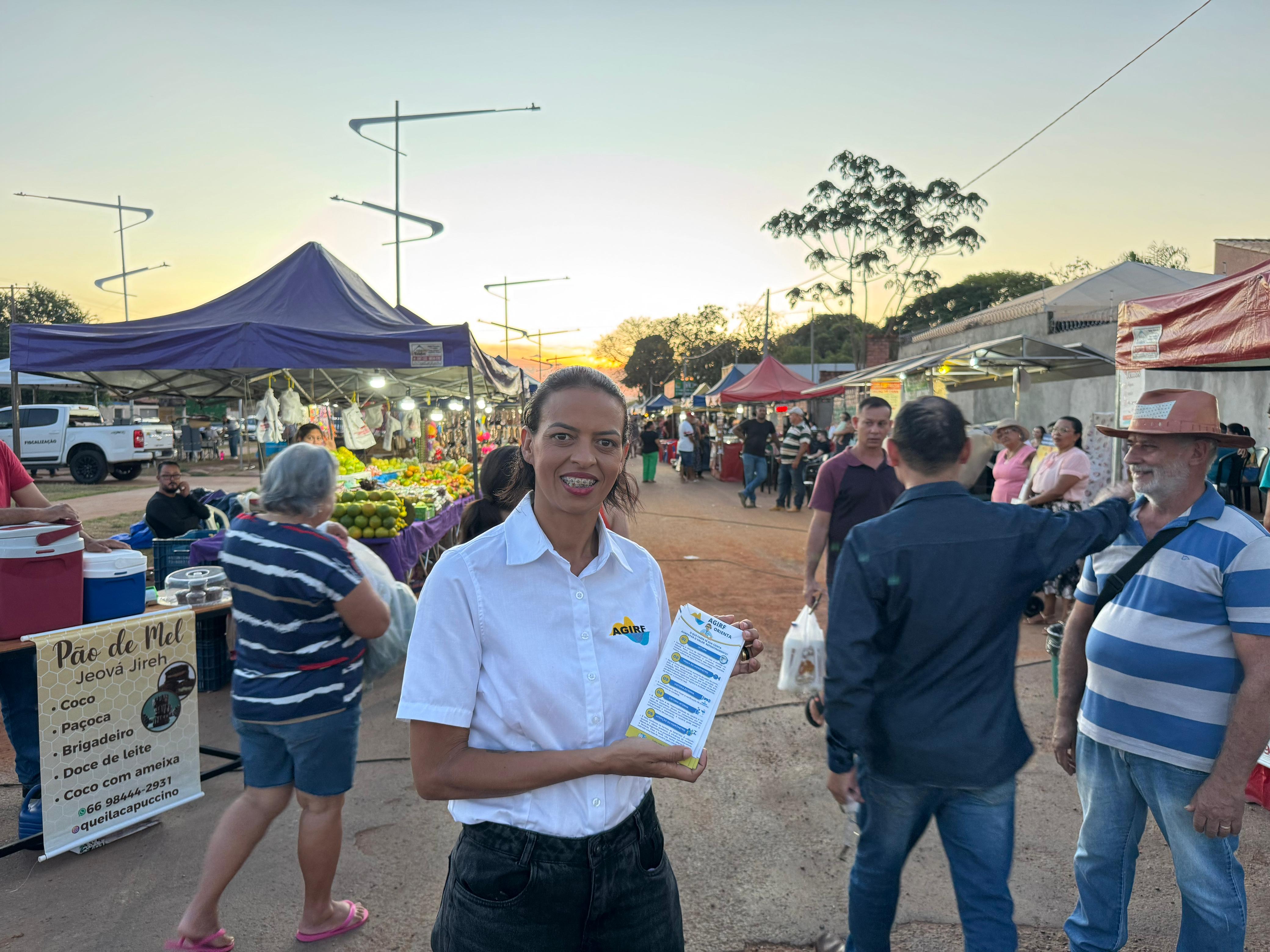 Além do atendimento no estande, os colaboradores percorreram a feira entregando panfletos e conversando com os feirantes e visitantes. A abordagem prática permitiu explicar como a AGIRF atua na regulação e fiscalização dos serviços públicos, destacando a importância da Ouvidoria como ferramenta de participação cidadã.