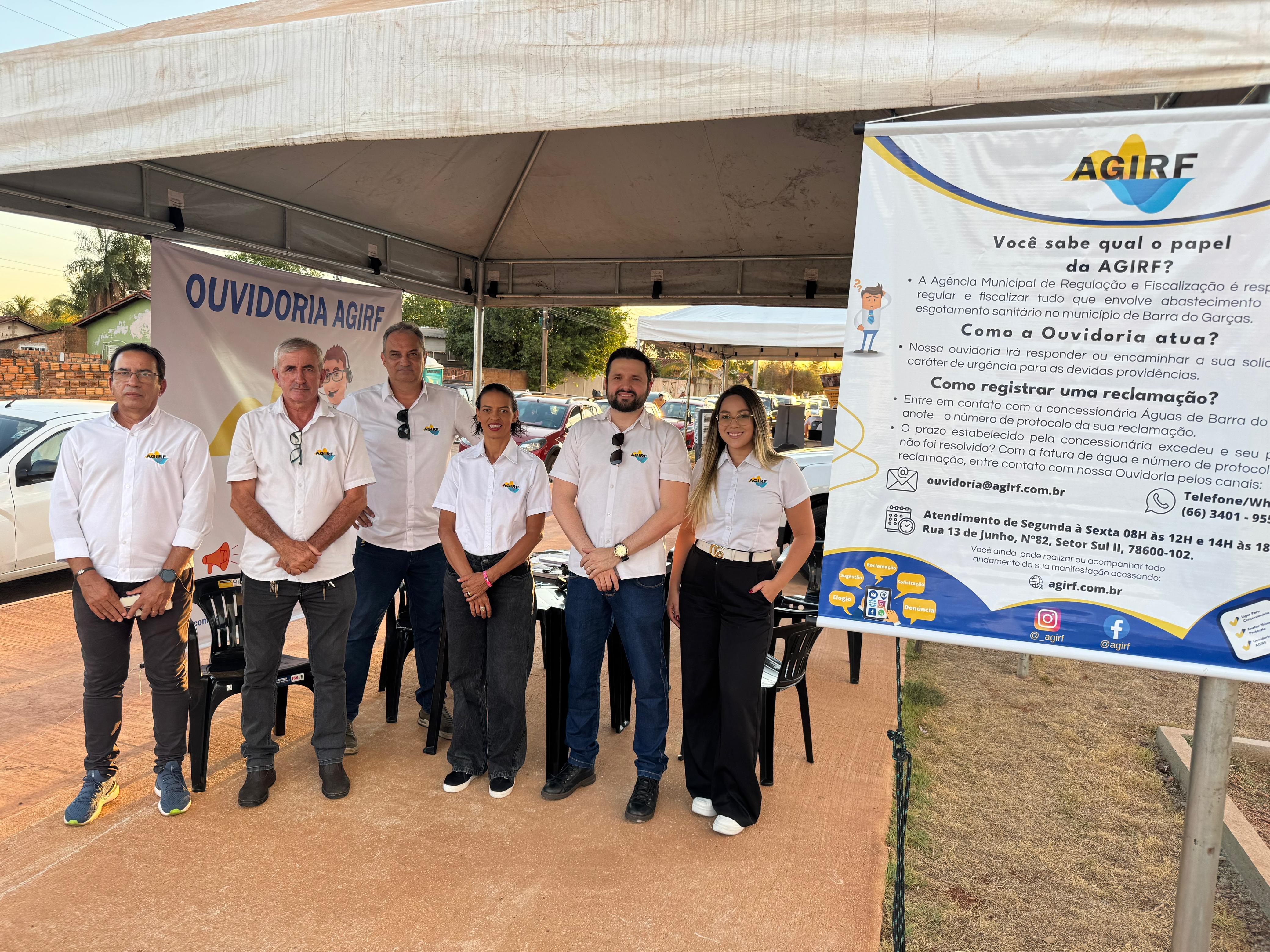 A equipe da AGIRF montou uma tenda com banners informativos e contou com a presença de representantes da Diretoria e da Ouvidoria. Durante toda a manhã, os profissionais estiveram à disposição da comunidade para esclarecer dúvidas, receber sugestões e orientar os moradores sobre os serviços de água e esgoto, além de divulgar os canais oficiais de atendimento da Agência.