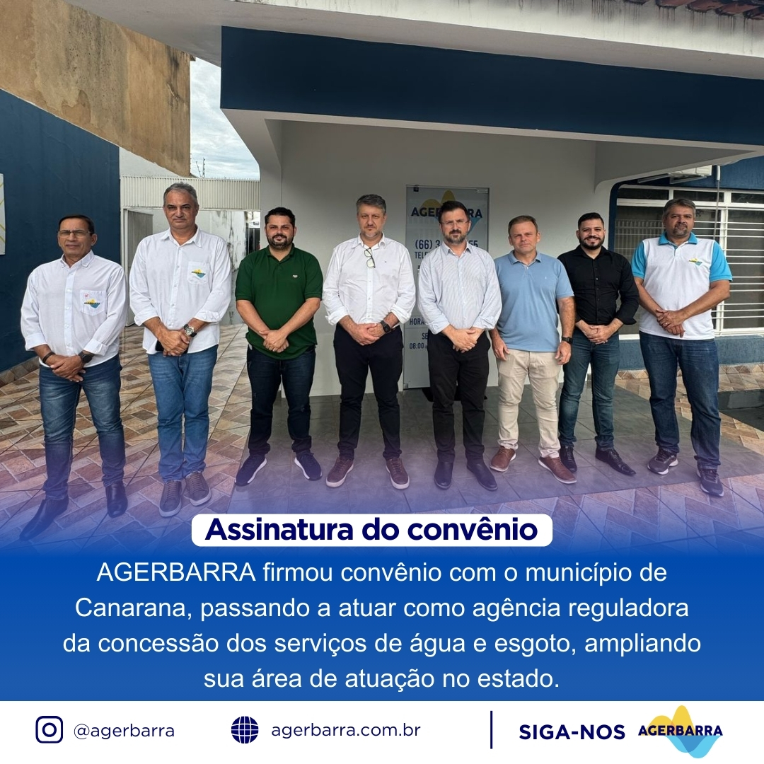 Destacamos ainda que a AGERBARRA firmou convênio com o município de Canarana, passando a atuar como agência reguladora da concessão dos serviços de água e esgoto, ampliando sua área de atuação no estado.