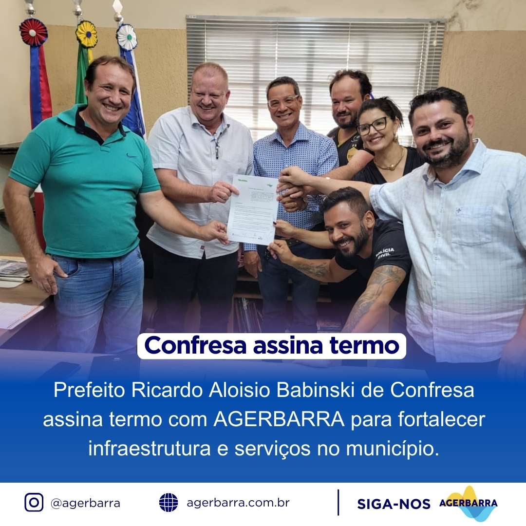 Nesta quarta-feira, dia 21, o prefeito Ricardo Babinski e os vereadores de Confresa assinaram um termo de cooperação com a AGERBARRA, representando um avanço significativo para o desenvolvimento do município. O acordo tem como objetivo fortalecer a regulação e aprimorar a qualidade dos serviços públicos essenciais, com destaque para o abastecimento de água.