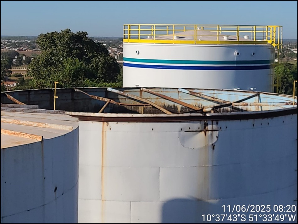 Outro problema grave foi detectado no reservatório da Estação de Tratamento de Água (ETA), que estava sem cobertura. A ausência da proteção expõe a água tratada à contaminação externa, ferindo normas sanitárias básicas.