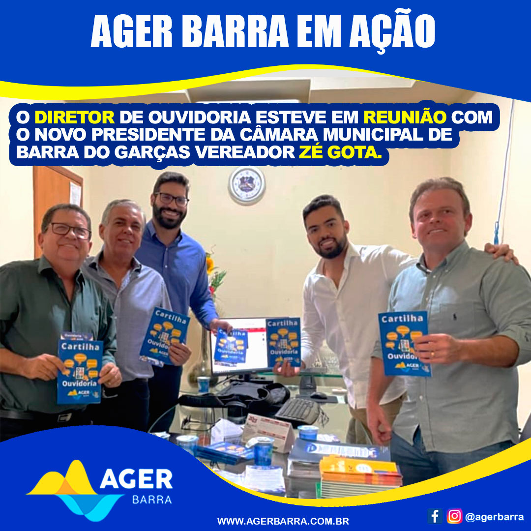 Nesta segunda-feira, 02-01, o diretor de ouvidoria esteve em reunião com o novo presidente da câmara municipal de Barra do Garças, vereador Gabriel Pereira Lopes (Zé Gota). Na ocasião o diretor de ouvidoria Fernando Farias realizou a entrega da cartilha de ouvidoria, que contém todas as informações necessárias para o usuário registrar suas reclamações, dúvidas e sugestões junto a agência de regulação e parabenizou o novo presidente pela posse e os trabalhos prestados a população junto a casa legislativa do município.