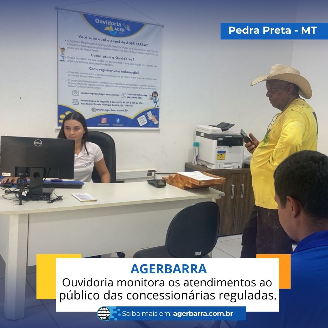 Diante disso, a Ouvidoria AGERBARRA iniciou um novo trabalho no ano de 2024 para ampliar o monitoramento, a eficiência e transparência da qualidade dos serviços prestados, relacionados ao Atendimento ao público, pelas Concessionárias reguladas pela AGERBARRA. Trata-se do Controle de Qualidade e funcionalidade realizado mensalmente onde os Agentes de Ouvidoria farão visitas aleatórias as centrais de atendimentos presencias das concessionárias reguladas pela AGERBARRA. Isso se torna um instrumento de controle que permite avaliar a qualidade do local e do atendimento que está sendo realizado aos usuários dos serviços de água esgotamento sanitário. A partir dessa avaliação, a Diretoria da AGERBRRA pode corrigir eventuais falhas ou aperfeiçoar o serviço prestado à população em seus municípios regulados.